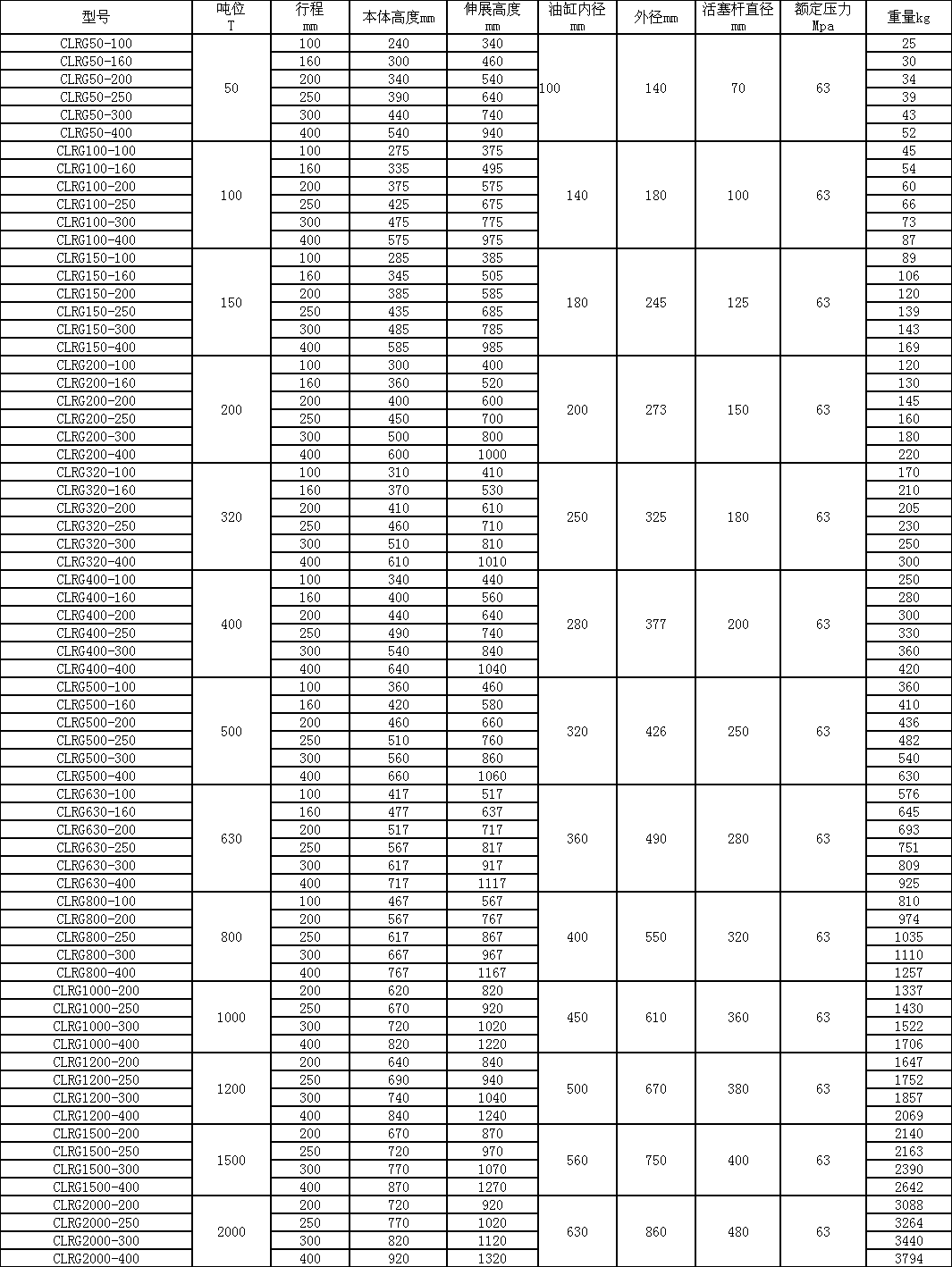 | CLRG-系列雙作用大噸位千斤頂 詳細(xì)參數(shù) |