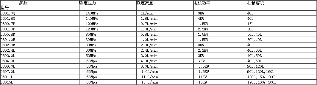 DBD系列電動油泵 詳細參數(shù)